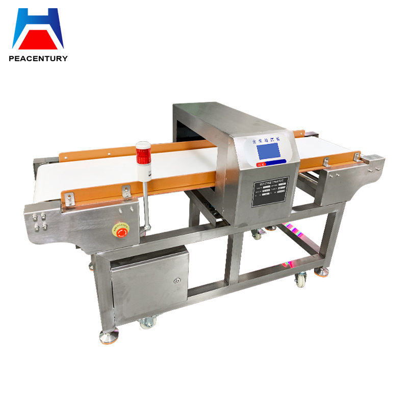 Metal detector for food industry is widely used in the detection of meat, frozen meat, sea food, mushrooms, drinks ,fruits , Sugar, Salt and vegetables. Rejection System Food Metal Detector can detect ferrous and non-ferrous and other metal objects , the sensitivity can be adjusted separately , with memory function can be stored 10 kinds of test material·Detector with audible and visual alarm , and automatically exclude , stop , rewind functions , user-friendly menu , easy to operate touch screen.